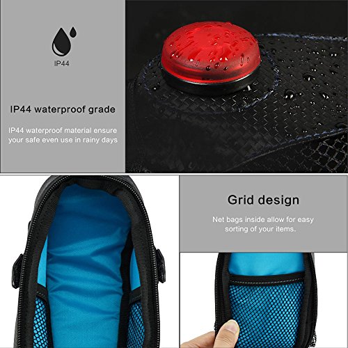 TAIL LIGHT DESIGN--The pocket carries a waterproof LED bike tail light, which has 2 lighting modes: Steady&flash, short press to change the lighting mode, increase your safe riding at night(Please open the battery cover, and move the battery's insulating piece away before first use the tail light)