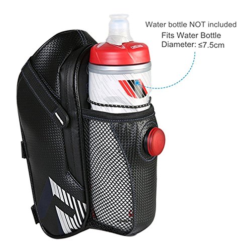 1. Size: 24 * 9.5 * 12cm(L * H * W) 2. Weight: 220g 3. Capacity: 1.6L 4. Material: Leather 5. Color: Black 6. Type: Saddle/Seat bag 7. Installation: Strip with buckle, velcro strips 8. Fits for water bottle diameter: ≤ 750mm Package includes: