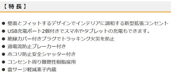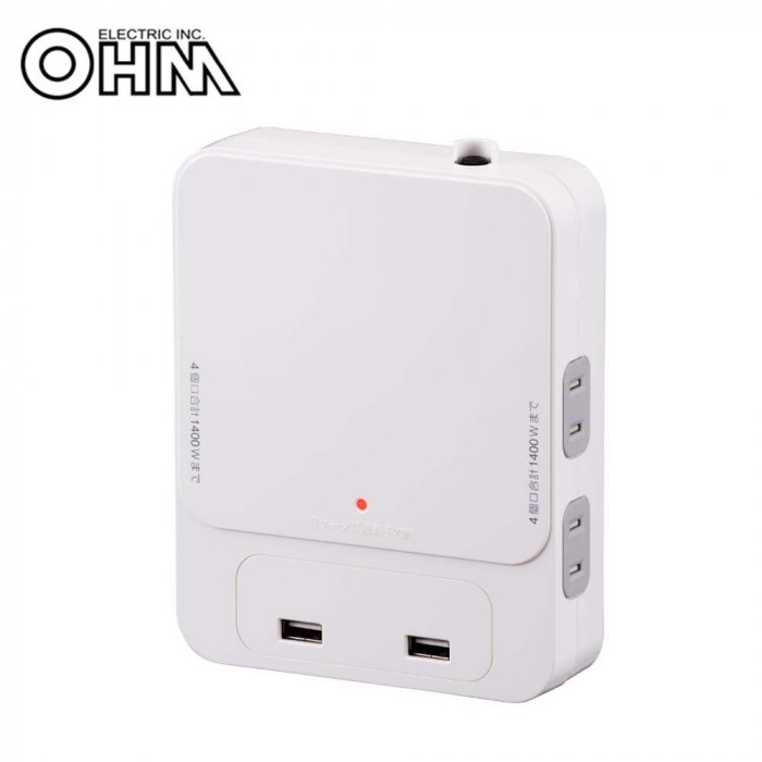 USB充電ポート2個付きでスマホやタブレットの充電もできます。 生産国:中国 ※サプライヤー直送品 ご注文後3~4営業日後の出荷となります【商品名】OHM 拡張コンセント リビング用 4個口+2USB HS-TU4LV1-W