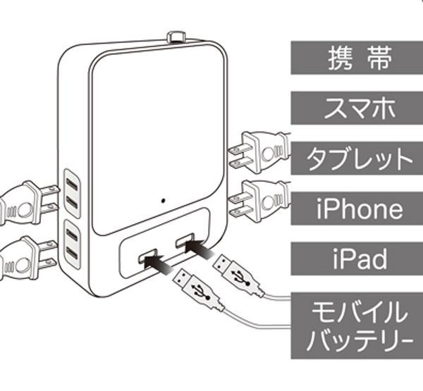 USB充電ポート2個付きでスマホやタブレットの充電もできます。
