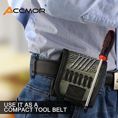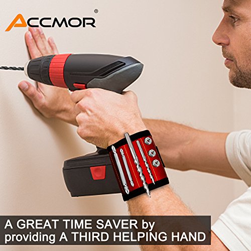 Accmor Magnetic Wristband with 5 Super Powerful Magnet for Holding Tools Screws, Nails, Drill Bits (BLACK)
