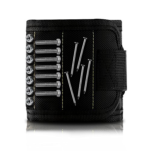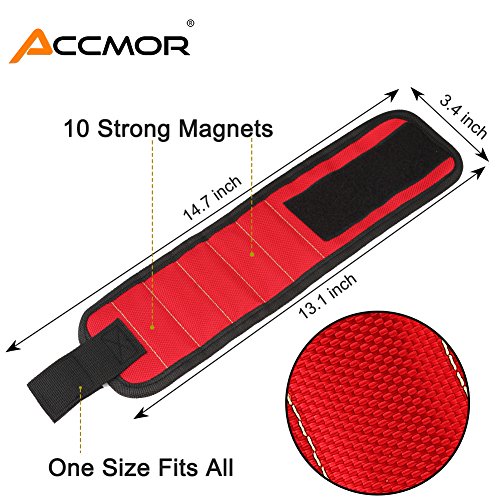 - 5 Strong magnets embedded in each wristband surround almost entire wrist for holding screws, nails, bolts, washers, drill bits. Adjustable size, One size fits all
