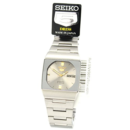 -. Binding : Watch -. Brand : Seiko -. Color : Silver -. Department : Womens -. EAN : 4900969845888 -. Feature : SEIKO SNY007J1 Seiko J Model : Made in JAPAN Dial: 23mm Case: 30 (with crown) x 30 (W) x 11 mm (thickness) / IMPORTED - Ship from Asia - Include: Seiko Manual + Seiko Box(Asia Model) + Amazon.com Warranty / Warranty: 2-Year Amazon.com Warranty provided by Asurion, no manufacturer warranty. / Box and Packaging: Our watch box are original but it is for Asia region, it might be different in the picture shown or different with box for US and EU market / WatchesZon : Delivery Time 8-20 working days by Registered Airmail -. Label : Seiko -. Manufacturer : Seiko -. Model : SNY007J1 -. MPN : SNY007J1 -. PackageQuantity : 1 -. PartNumber : SNY007J1 -. ProductGroup : Watch -. ProductTypeName : WATCH -. Publisher : Seiko -. Studio : Seiko -. Title : Seiko 5 Silver Dial Stainless Steel Mens Watch SNY007J1