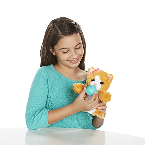 What's better than your very own soft and cuddly kitty? A kitty pet who will play peek-a-boo with you! This sweet little Peek-a-boo Daisy pet is just like a real kitty, and she meows to show you how happy she is to see you. But her little front paws cover her eyes to play peek-a-boo with you! When playtime is over you can hold her close and feed her from her cup. Whenever you want to, it's peek-a-boo time with your Peek-a-boo Daisy pet! FurReal Friends and all related characters are trademarks of Hasbro.Feature