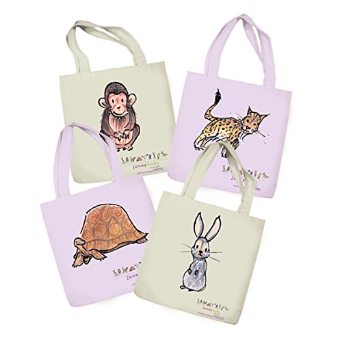 Janey Baby Organic Cotton Canvas Tote Bags (4 Pack), Assorted, 12.75" x 15.5", Green/Purple