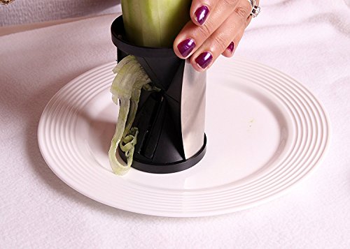 two different spiral sizes to juleinne cucumbers, zuchini, carrots, and many other vegetables and fruits, create vegetable spaghetti or thicker spirals salads, soups, side dishes, the envy of any chef