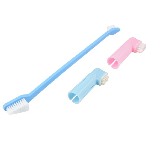 -. Title : Jardin Bristle Handle Brush Finger 3-in-1 Toothbrush for Pets, Pink/Blue