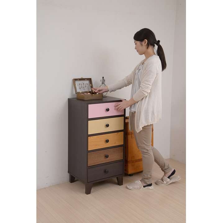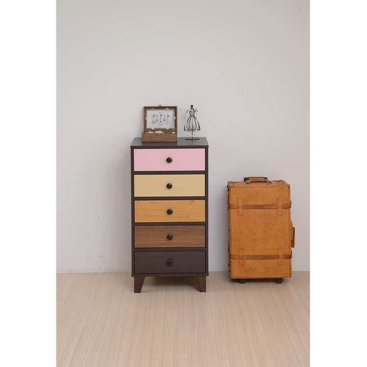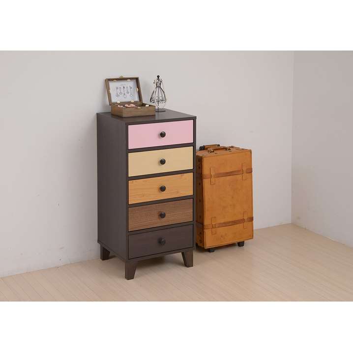 ●ポップな差し色が可愛いパネラシリーズの5段チェスト。