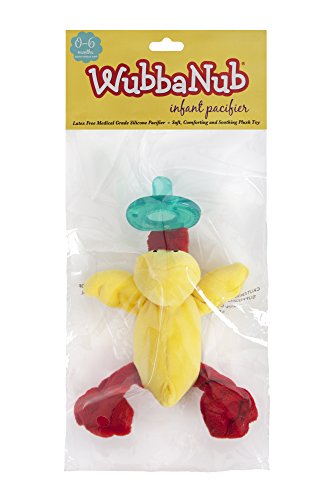 -. Binding : Baby Product -. Brand : WubbaNub -. Color : Yellow -. EAN : 0726983877865 -. Feature : Plush animal makes it easy for baby to grasp and manipulate the pacifier. / Distributed in hospitals, NICU and well-baby units nationwide / Made with a Soothie medical grade, latex-free pacifier / NOTE: Wubbanubs come packaged in a clear polybag with header card or a clear cube box / Recommend for Newborn up to 6 months -. IsAdultProduct : 0 -. Label : WubbaNub -. LegalDisclaimer : Do not tie pacifier around child's neck as it presents strangulation danger. -. Manufacturer : WubbaNub -. Model : WN011 -. MPN : WN-001 -. NumberOfItems : 1 -. PartNumber : WN-001 -. ProductGroup : Baby Product -. ProductTypeName : BABY_PRODUCT -. Publisher : WubbaNub -. Studio : WubbaNub -. Title : WubbaNub Yellow Duck Pacifier -. UPC : 885284343568