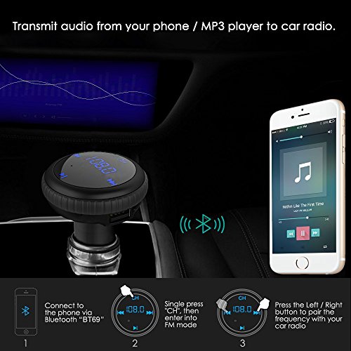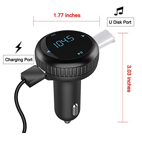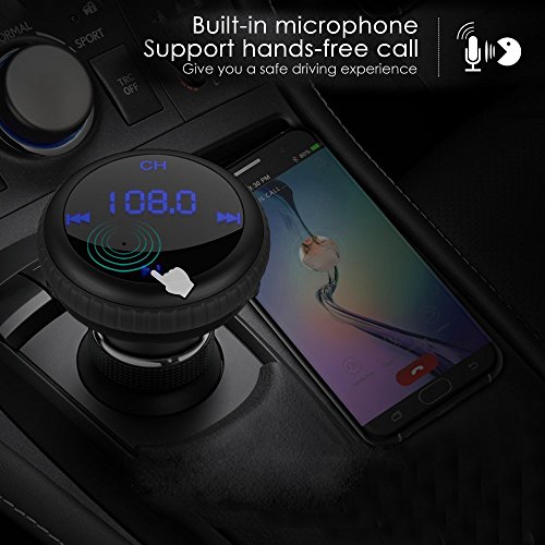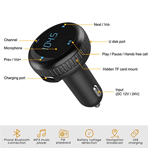 Bluetooth FM Transmitter& Car Charger , Wireless Bluetooth Car Kit , Car MP3 Player with Dual USB Port TF Card Port Hands-Free Calling for iPhone Samsung Motorola Nexus LG Android Phones (Black)