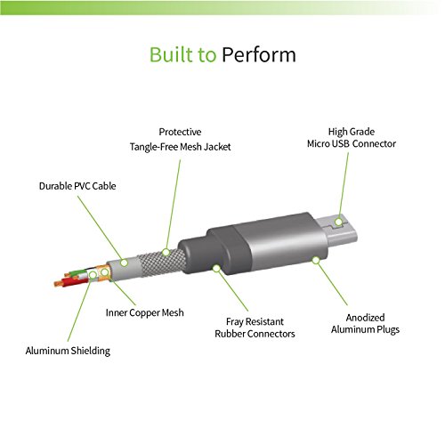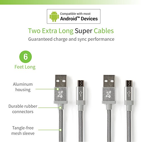 Premium woven 6ft. Micro USB charge/sync cables. Durable braided mesh cables look great, are tangle-free and lasts 5x longer