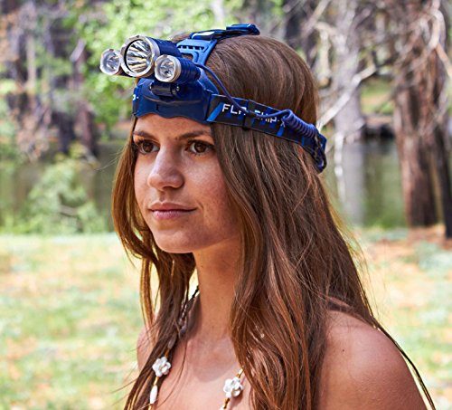 Brightest spotlight beam hinges downward. Compare with petzl and black diamond headlamps. Side and top head strap can be tightened for hands-free on helmets, hats, bikes, dogs and everyone from adults to children without headlight loosening or flopping around.
