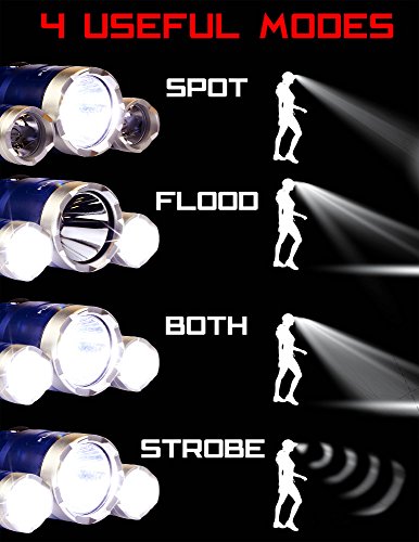 4 MODES: 1) MAX power both flood and spot 2) Only spot 3) Only flood 4) Strobe