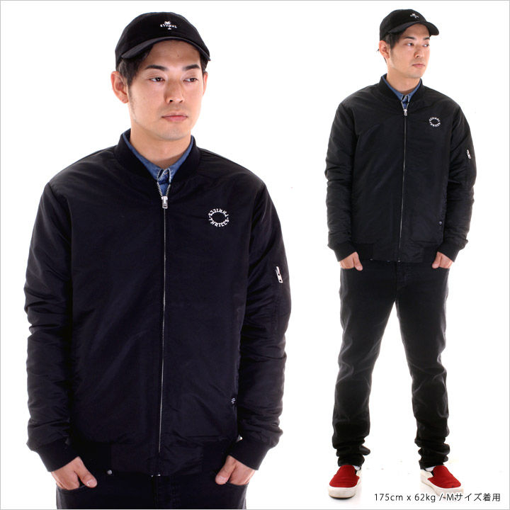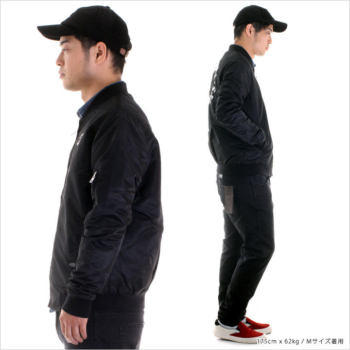 ブラックのボディにロゴ刺繍が映える男らしい印象のMA-1です。