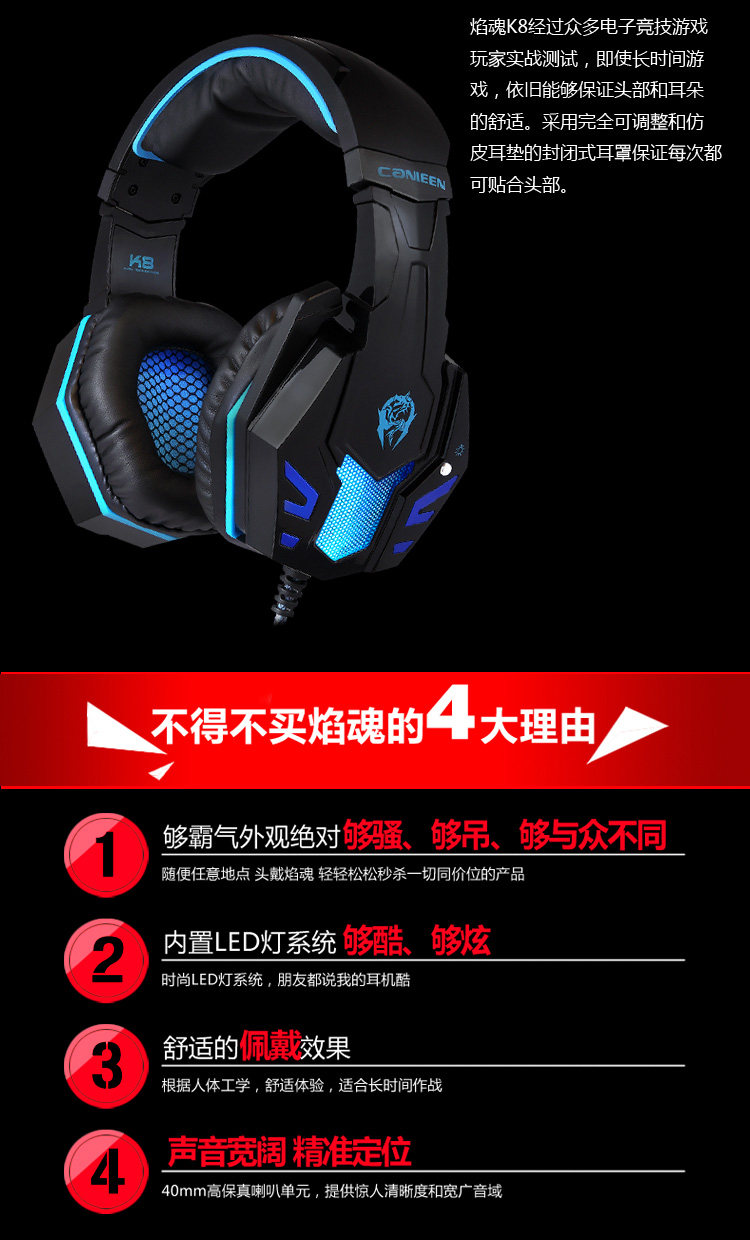 canleen/佳合 K8 电脑游戏耳机笔记本台式头戴式耳麦重低音带话筒