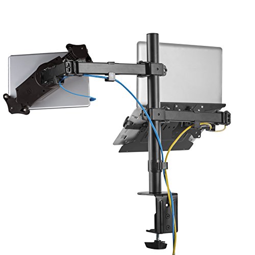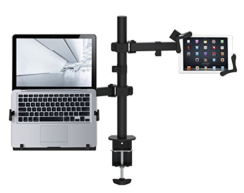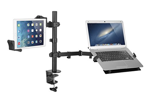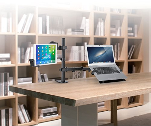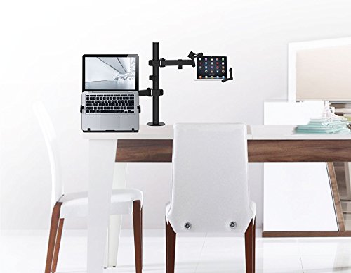 -. Feature : Twin arms hold your tablet and laptop side by side / Central mounting pole allows for custom height positioning for both arms / 360 degree rotating tablet holder for portrait and landscape orientations; 360 degree rotating laptop holder / 4 flexible joints on each arm / Compatible with 7-13 Inch tablets, including iPad Pro 9.7/10.5/12.9, iPad mini, iPad (2017), iPad Air, Surface Pro 4, and more