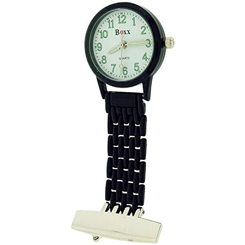 -. Title : Boxx Ladies - Gents Analogue Black Metal Professional Nurses Fob Watch Boxx363