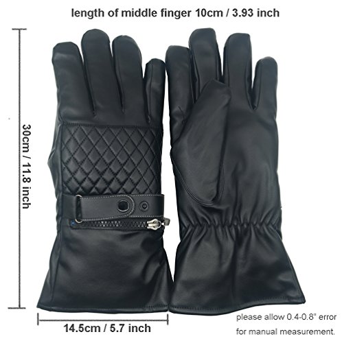 Waterproof and Windproof Li-ion Battery Heated Gloves -- No longer to be Cold this Winter No More Heavy Dry Batteries, No More Repeating Fee of Dry Battery again. Far-infrared carbon fiber heating element thermal for fingers and the back of your hand Humanized design with a holding temperature of 38-50°celsius, suitable for human boday Outer material: washable leather Inner material: thicked polar fleece, furry It is a pair of warm gloves even without batteries. Battery capacity: 7.4v/2200MAH Li-ion Working time: 3-4 hrs with a full charge, varies under different environment Perfect for cycling, motocycling, racing, climbing, walking, driving and so on. Size: Black- Gloves for women:length of gloves 11.03 inch(28cm), length of middle finger 3.7 inch(9.4cm). Black Gloves for men: length of gloves 11.8(30cm), length of middle finger 3.93 inch(10cm). Please allow 0.4-0.8 inches error for manual measurement. Package: 1 pair gloves 1 pair of rechargeable Li-ion batteries 1 pc power charger 1 pc english manual Please kindly note: The gloves are not professional and specially designed gloves for extremely cold weather,it comes with heating function, can offer warmth to your hands in cold days to ease your pain,but not means it will keep your hands warm in all tough working enviroment. Just like the different feeling you wear a warm coat in cool autumn days and in chilly winter days. 0 |