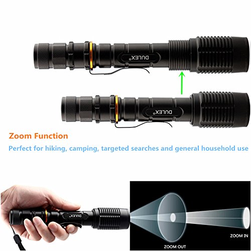 DULEX DZ5 High Powered Zoomable LED Handheld Flashlight - Portable Water Resistant LED Tactical Flashlight