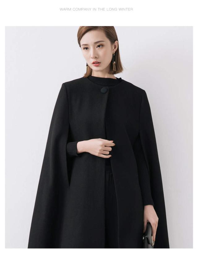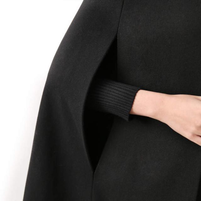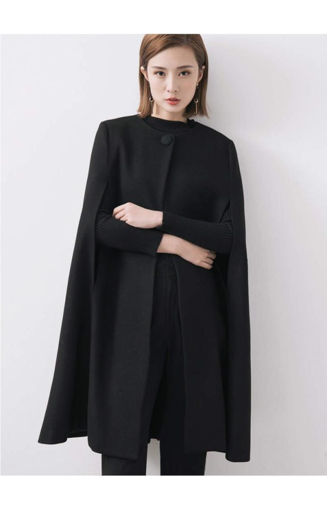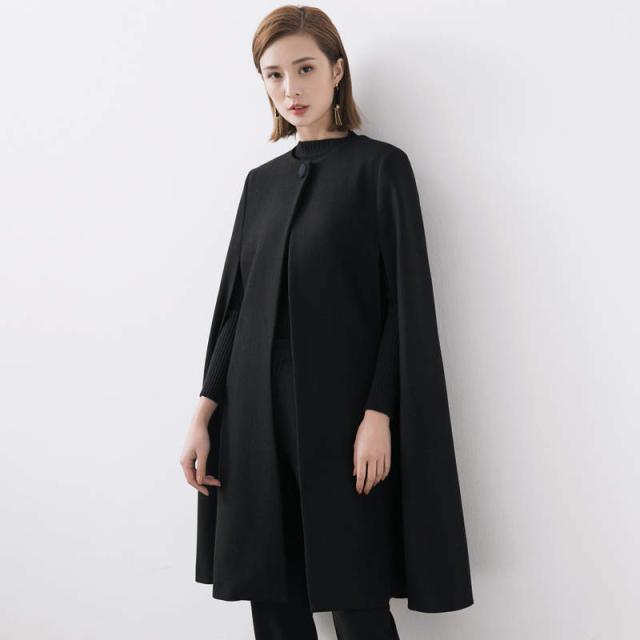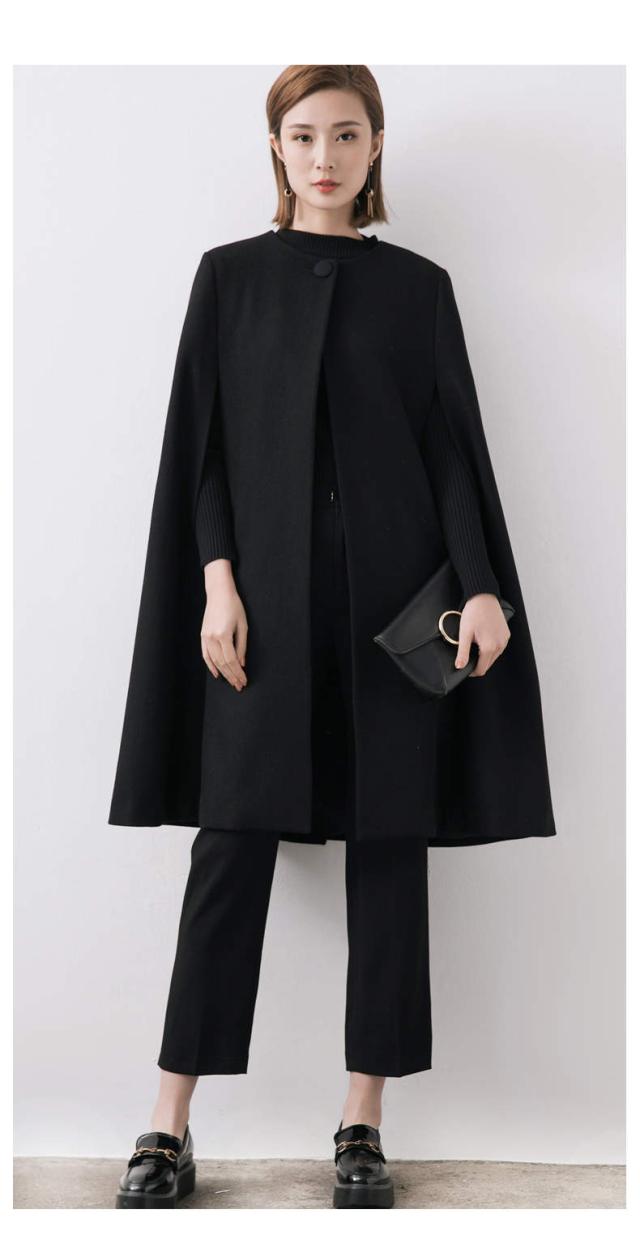 トレンド シンプル ミディアム丈 ウール混 ケープコート モダン スタイリッシュ コート 秋冬 上品 S M