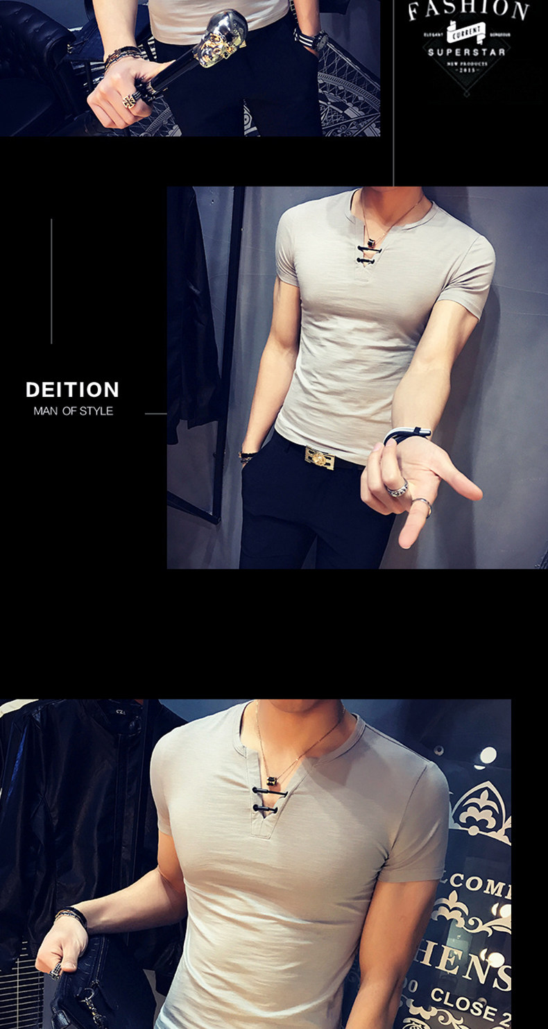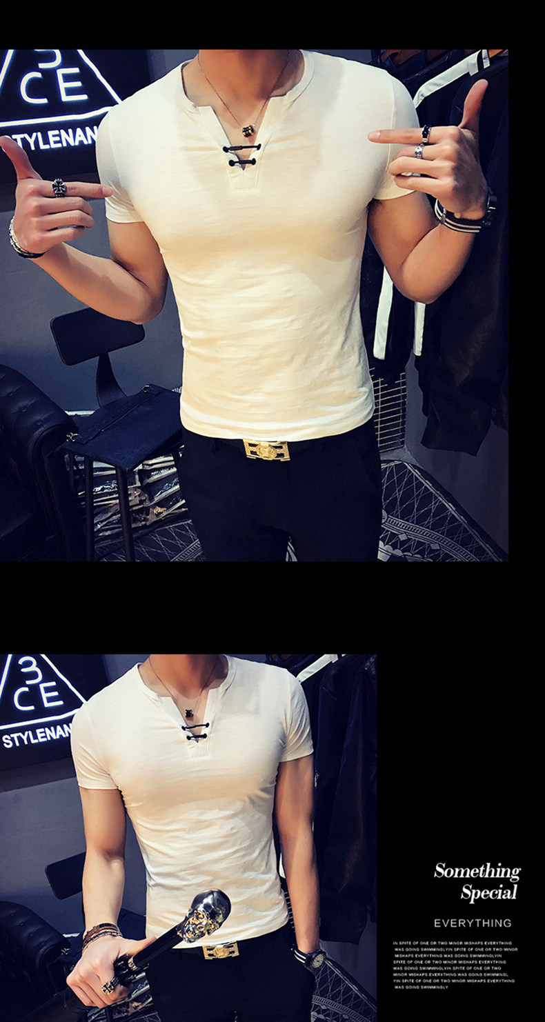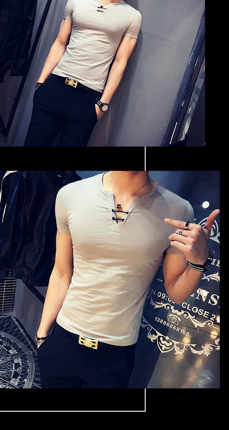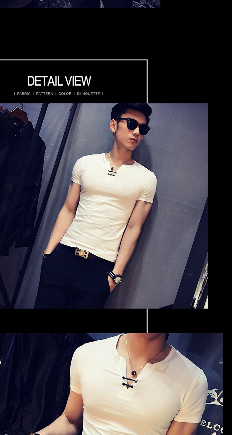 夏季 纯色休闲V领透气半截袖男士青少年体恤韩版修身短袖T恤潮
