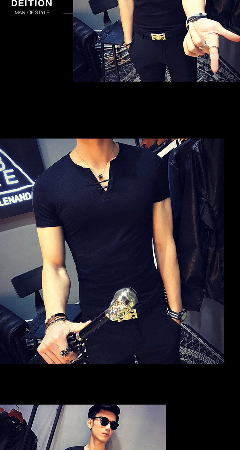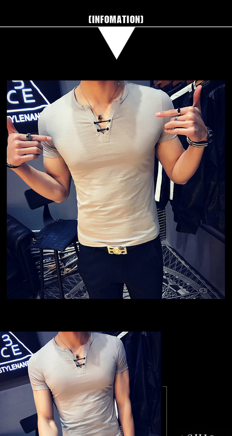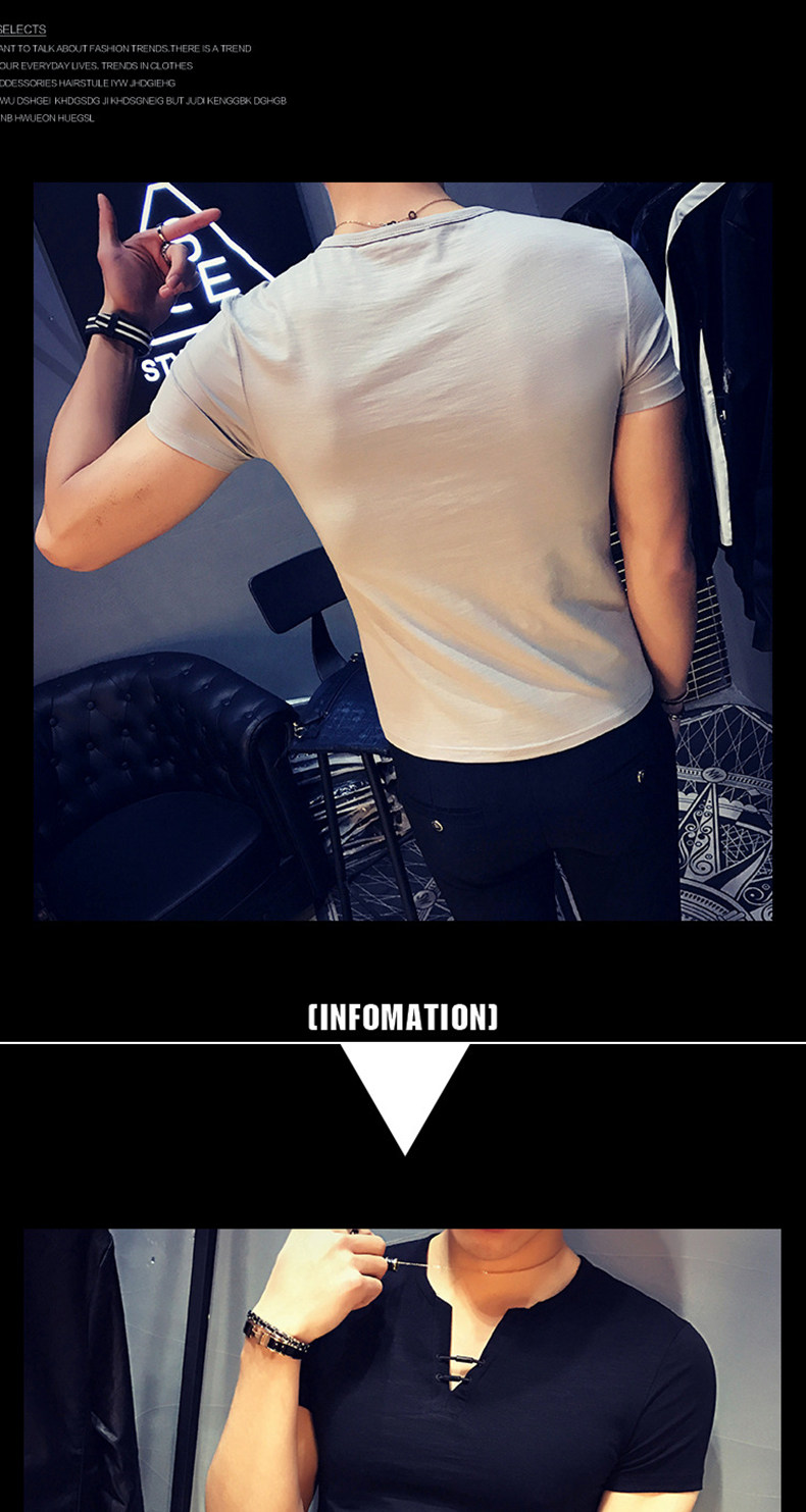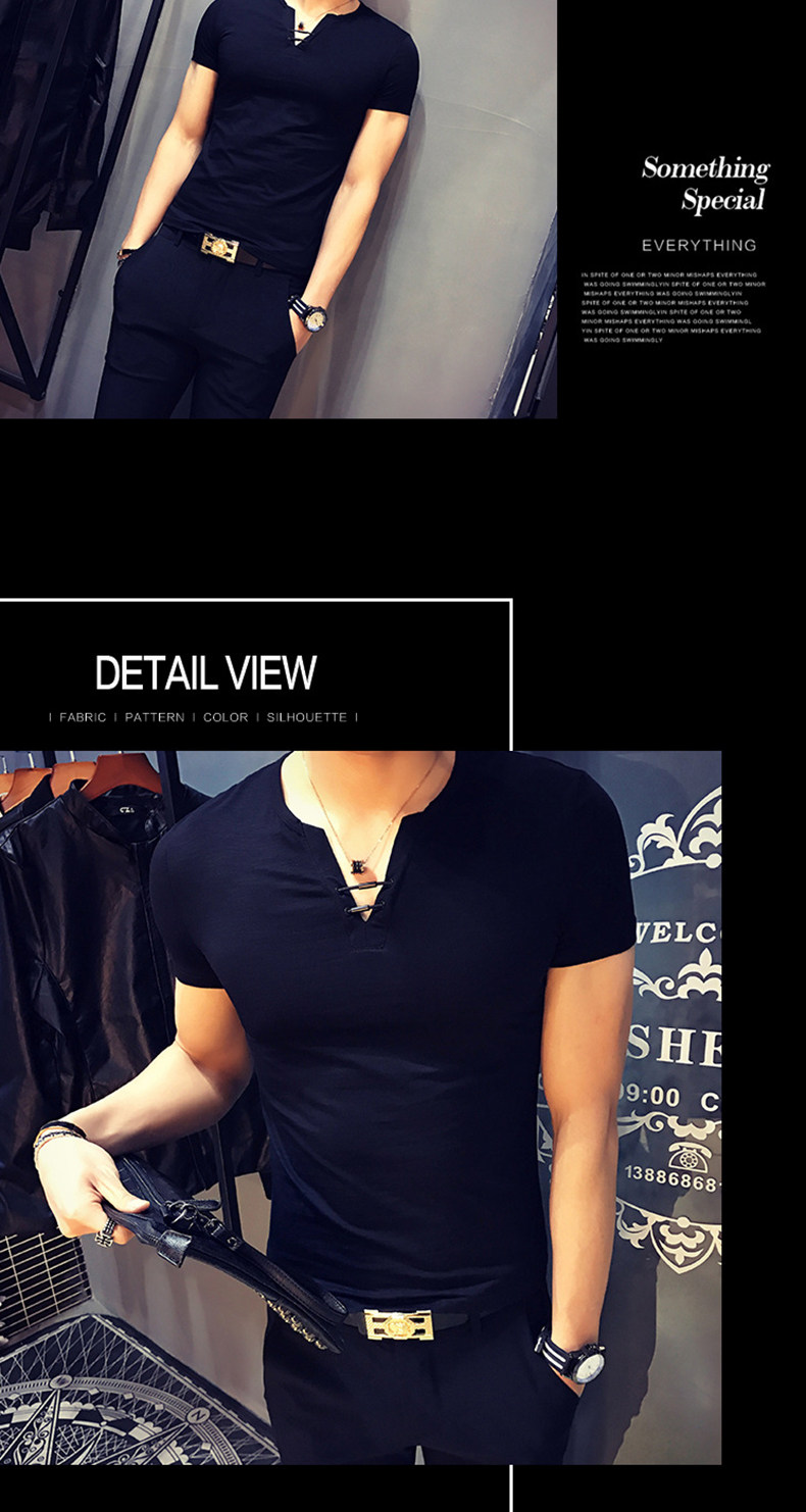 夏季 纯色休闲V领透气半截袖男士青少年体恤韩版修身短袖T恤潮