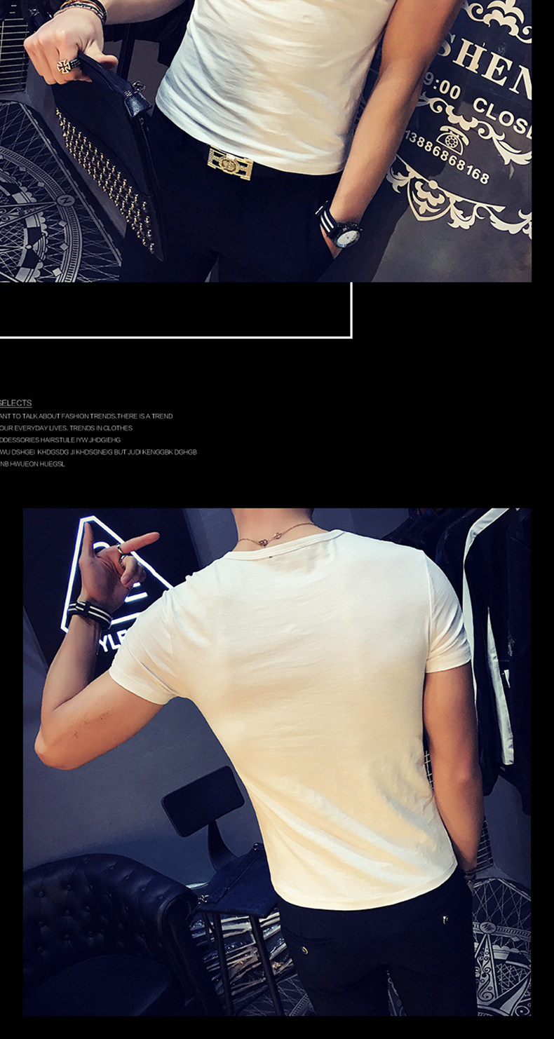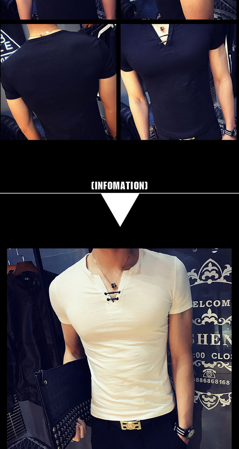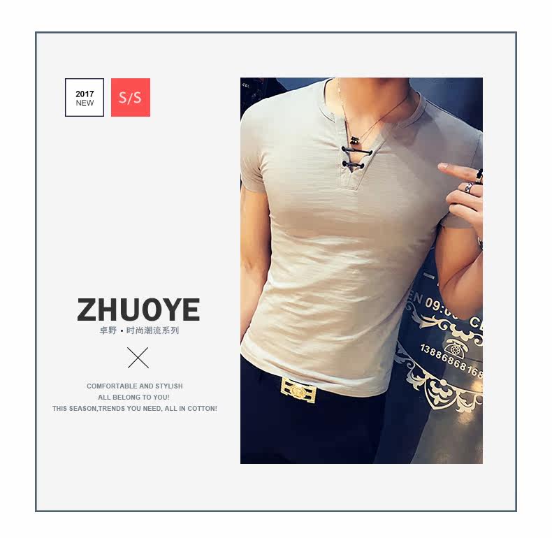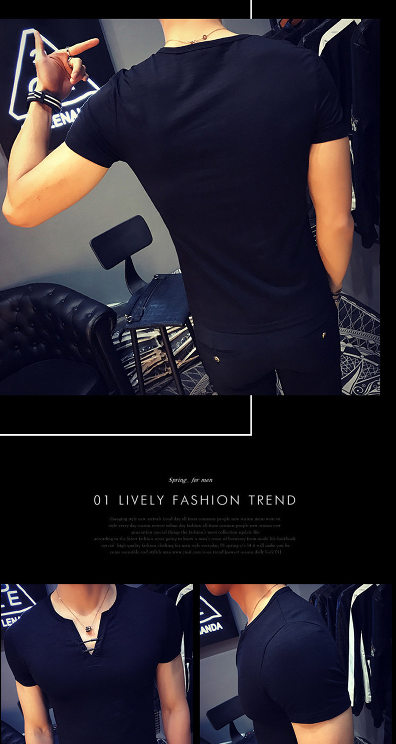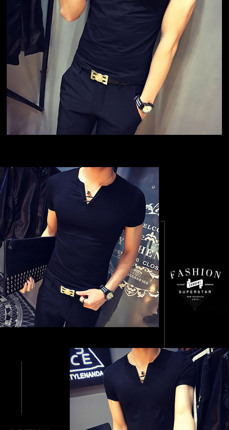 夏季 纯色休闲V领透气半截袖男士青少年体恤韩版修身短袖T恤潮
