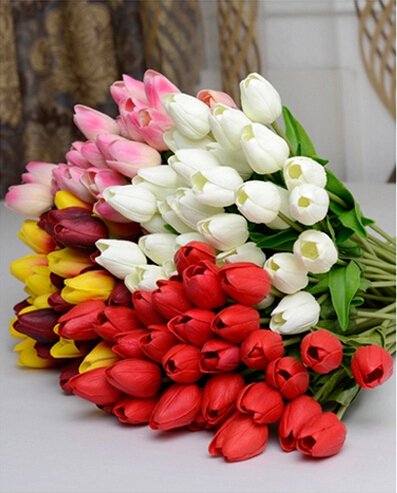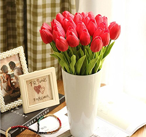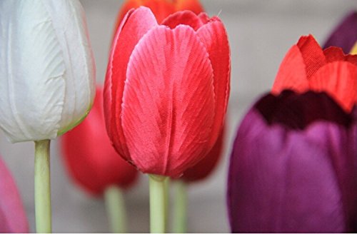 - Feature : 100% Brand new and high quality. / Artificial tulip flowers, well made and vibrantly colored, looks real-like. / The tulip are made of high quality silk and easy to clean. Ideal for placing ina vase, filling of center pieces or home wedding decoration / It is great for wedding bouquet, party , office decoration ,decor, altar, church ,corsages, pew bows, reception centerpieces