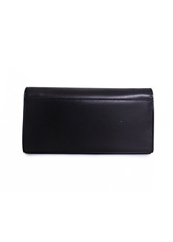Black Leather creates a simple and sophisticated clutch handbag that is stunning and pairs perfectly with a gown for a formal event. - Small sized bag; 9-1/2"W x 4-3/4"H x 2"D (width is measured across the bottom of handbag)?