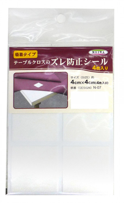 fk094igrjs四つ角にシールを貼って、テーブルクロスのズレを防止します。 製造国:日本 素材・材質:基材:ポリエステルフィルム、アクリル発泡体粘着剤:アクリル系離型剤:紙、ポリエステル 商品サイズ:4×4cm※お届け地域により、別途運賃がかかる場合やお届けできない場合がございますので、お問い合わせ下さい。