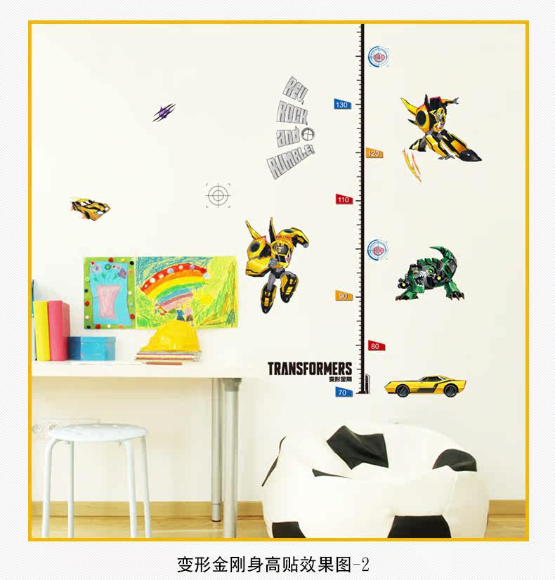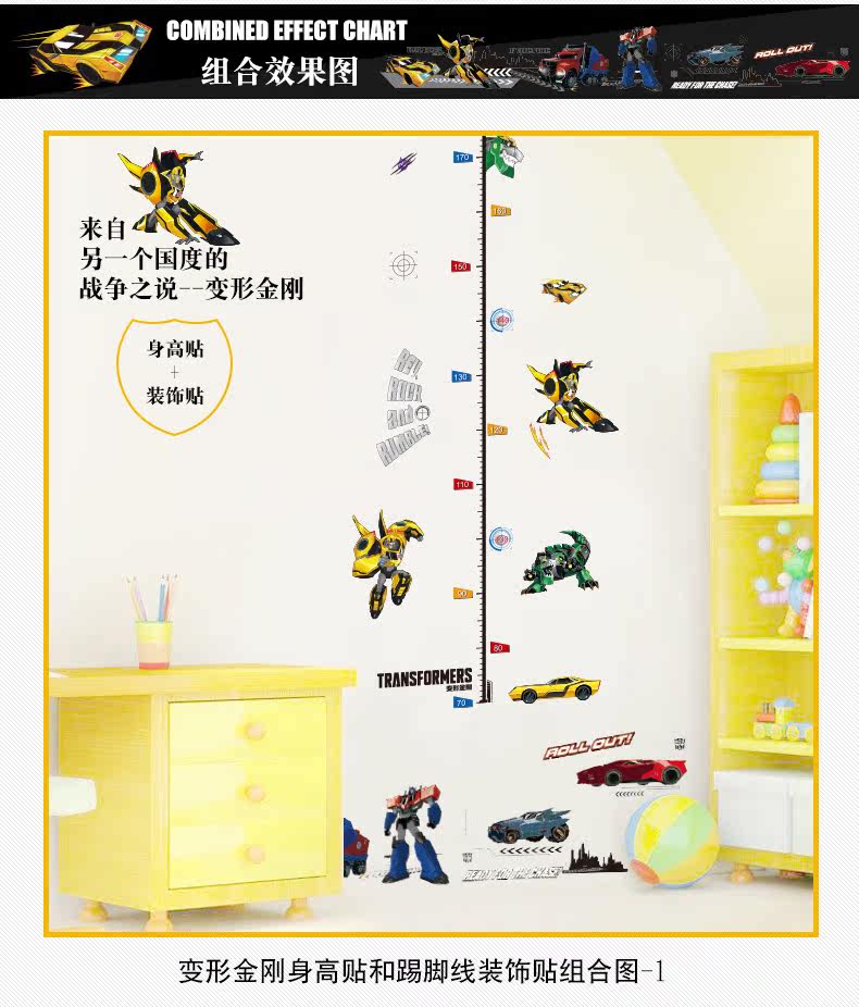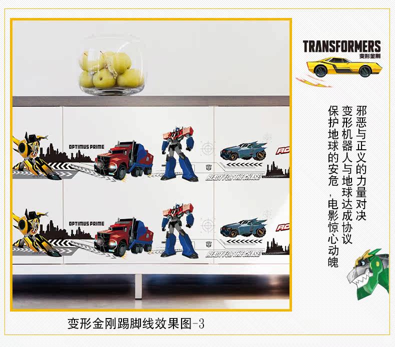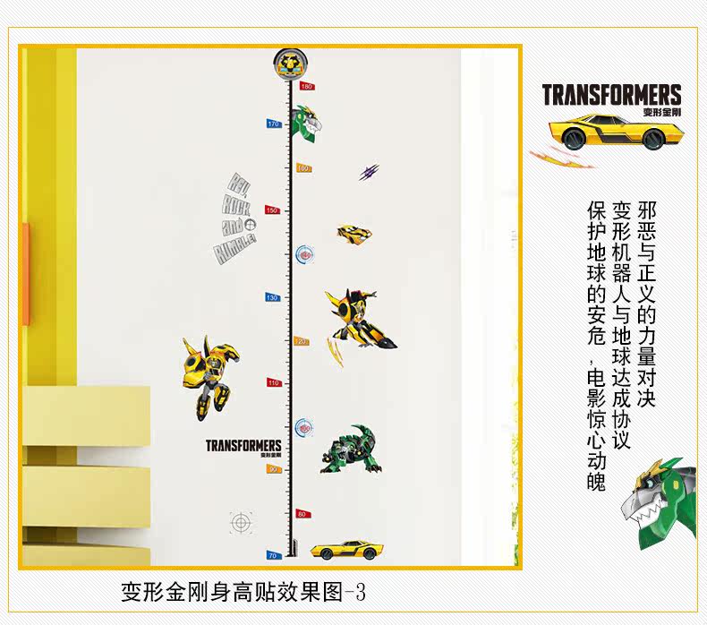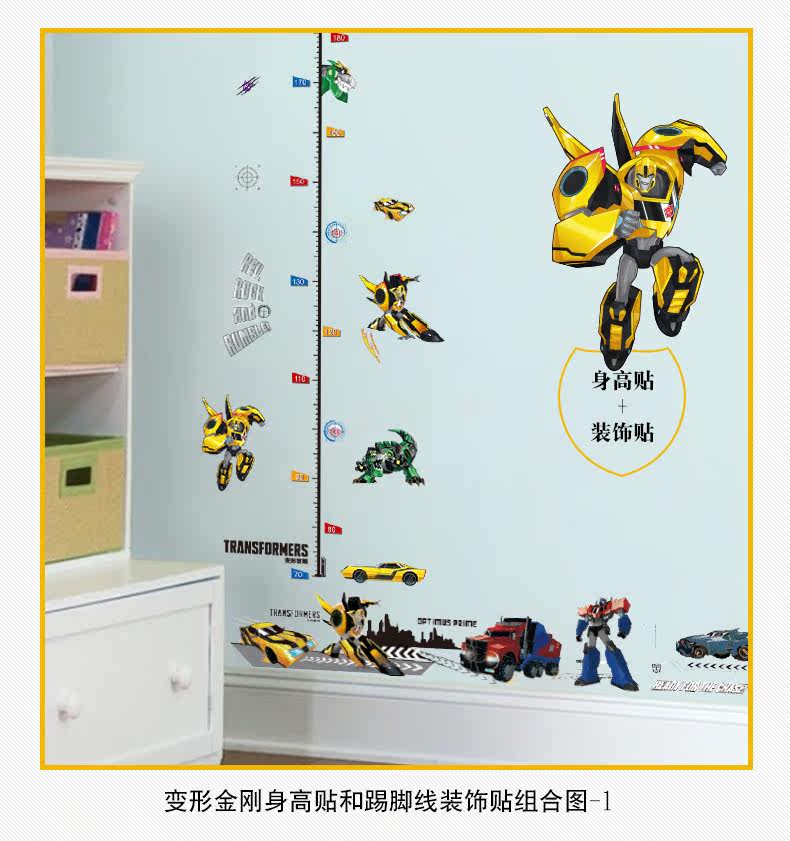 变形金刚儿童房卧室环保可移除身高贴踢脚线装饰墙贴