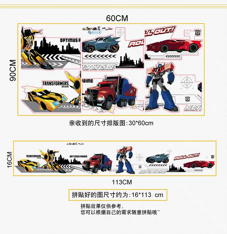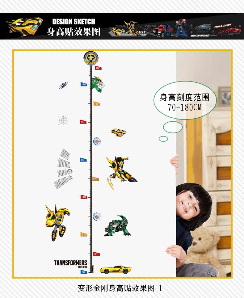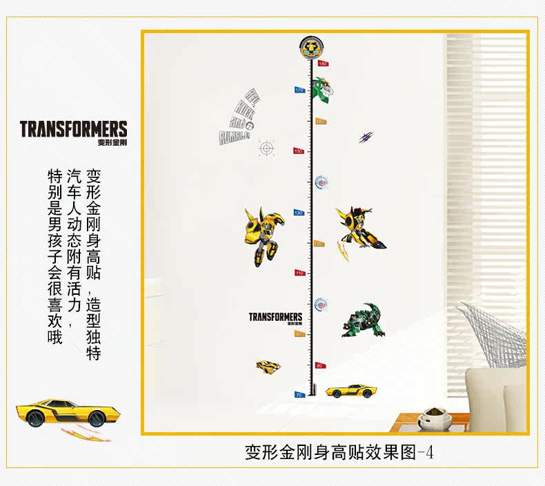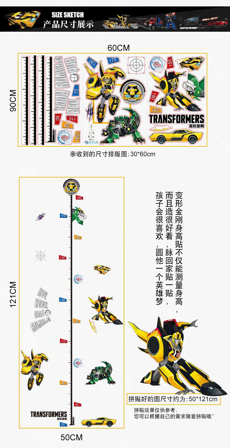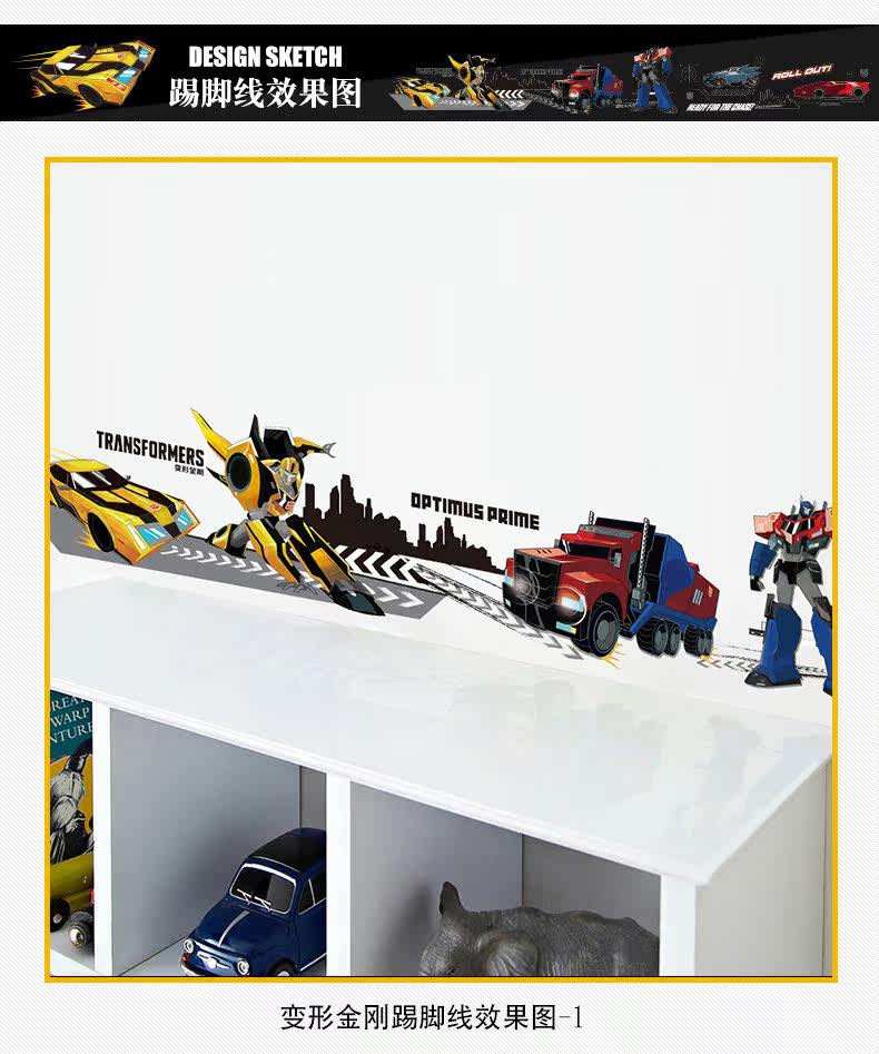 变形金刚儿童房卧室环保可移除身高贴踢脚线装饰墙贴