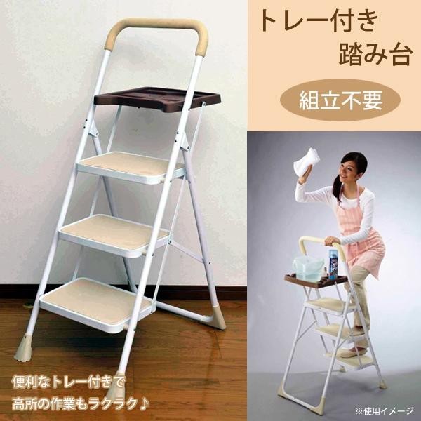 組立不要!大きな踏み板で安定感あり!電球の取り換えやエアコンの掃除などの時には、トレーがあるのでとっても便利です。大きなスチールの踏み板は昇り降りの不安も解消。折り畳めばたったの9cmですからちょっとした隙間に収納できます。 |
