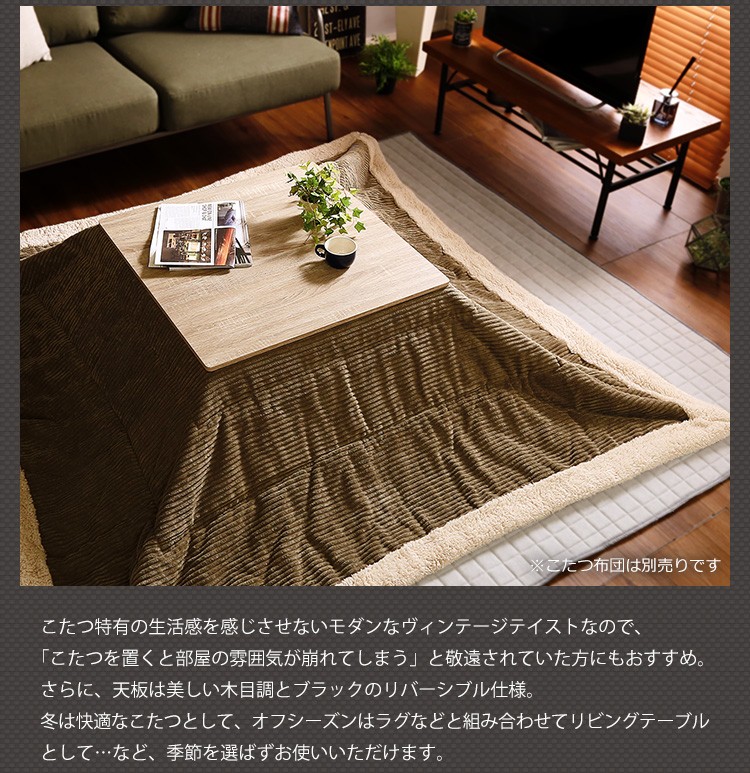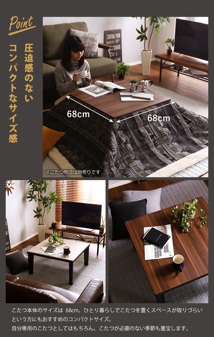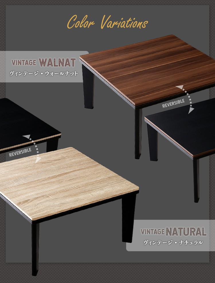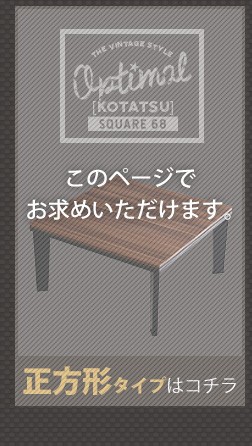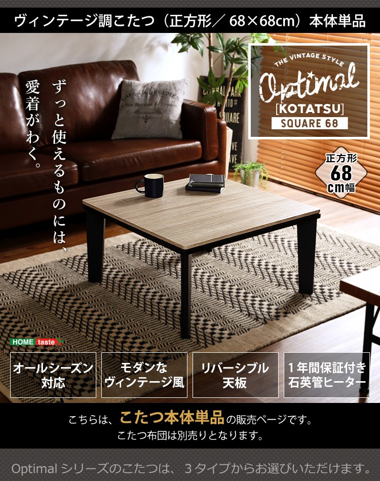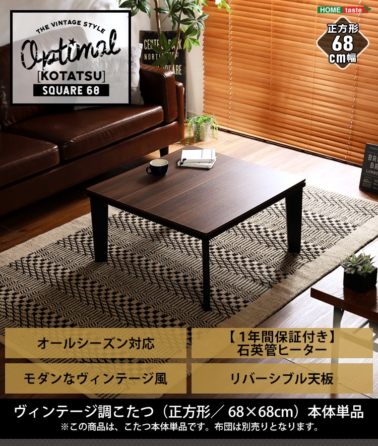 カジュアルこたつ ヴィンテージタイプ 石英管ヒーター付 68cm幅 正方形 テーブル本体単品【OPTIMAL -オプティマル-】シリーズ [SQUARE 68]