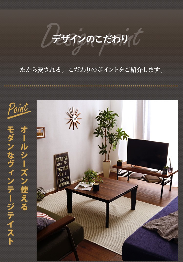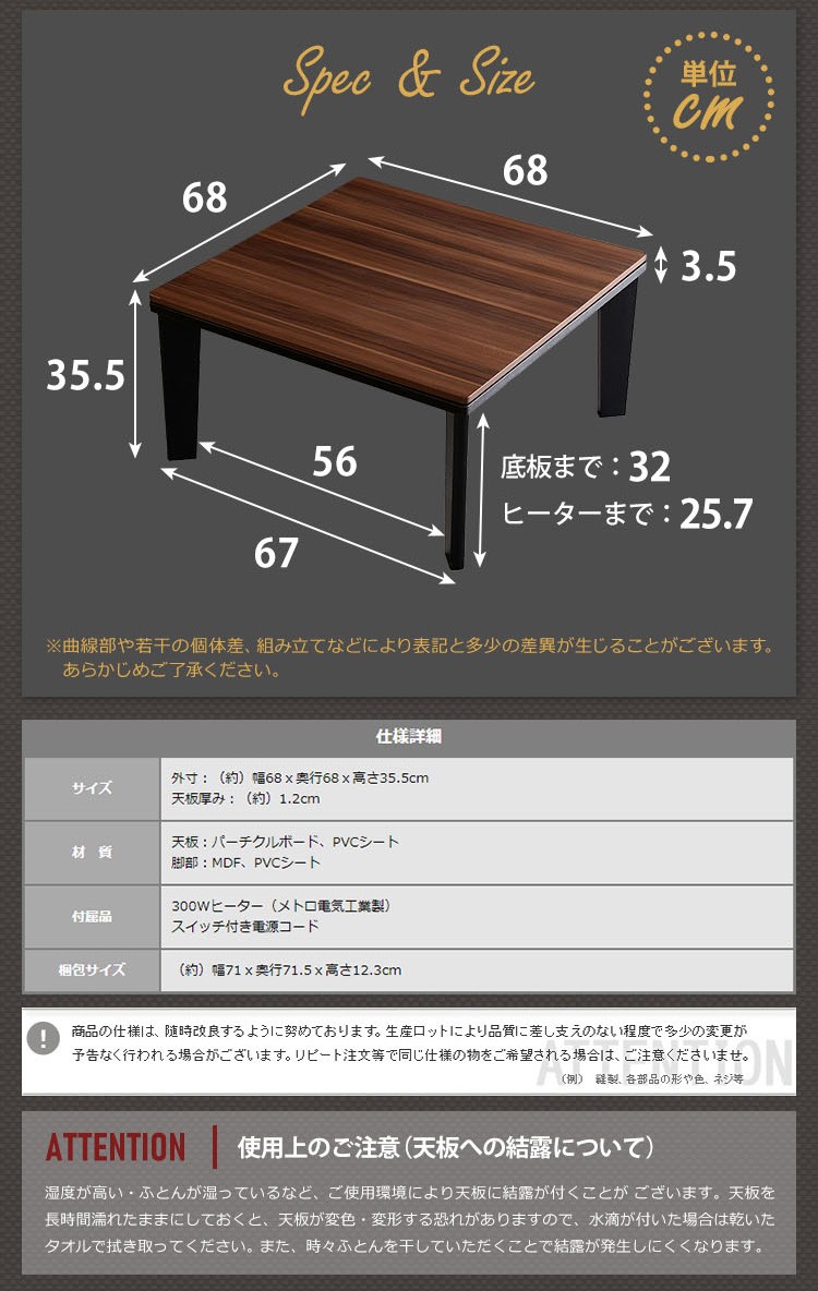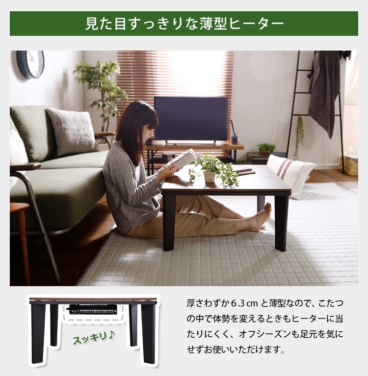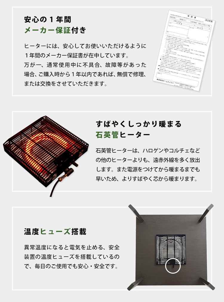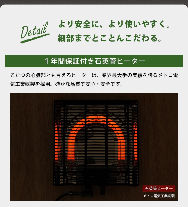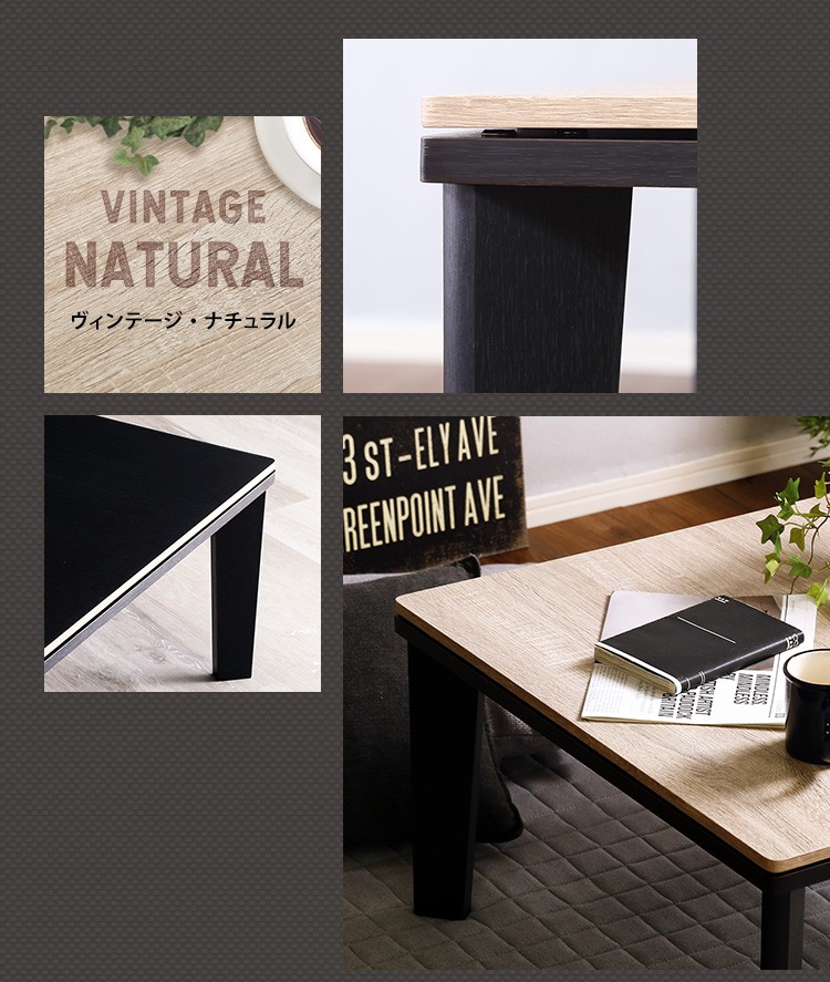 カジュアルこたつ ヴィンテージタイプ 石英管ヒーター付 68cm幅 正方形 テーブル本体単品【OPTIMAL -オプティマル-】シリーズ [SQUARE 68]