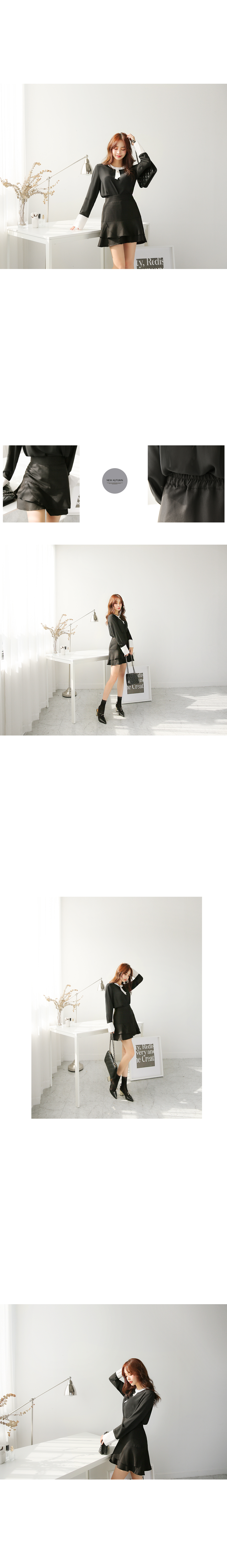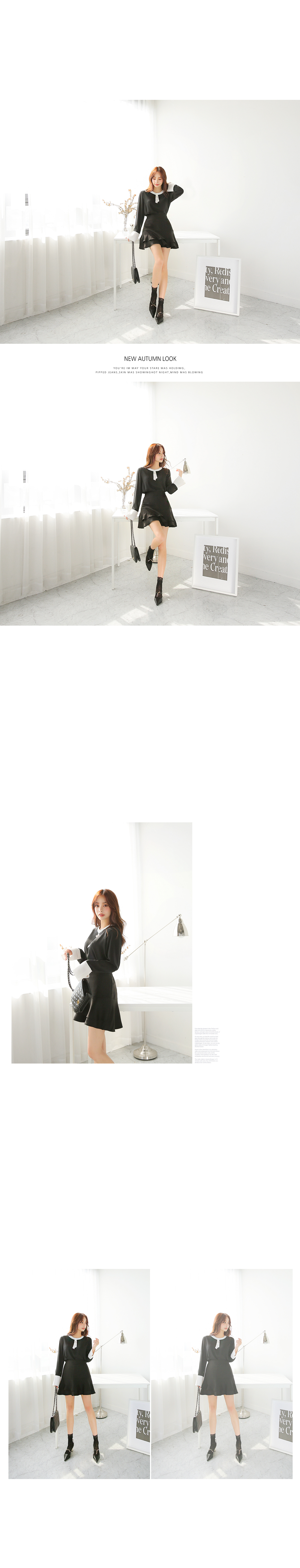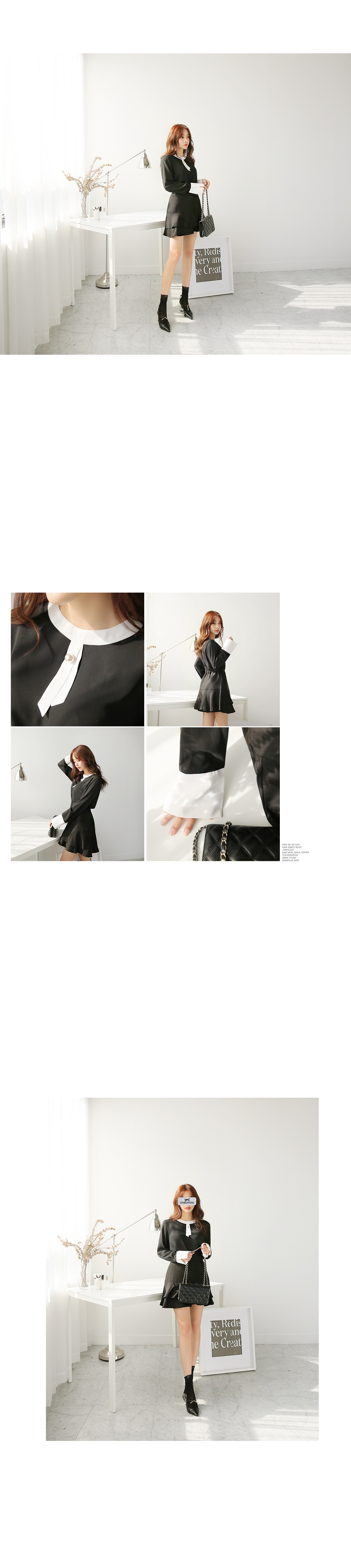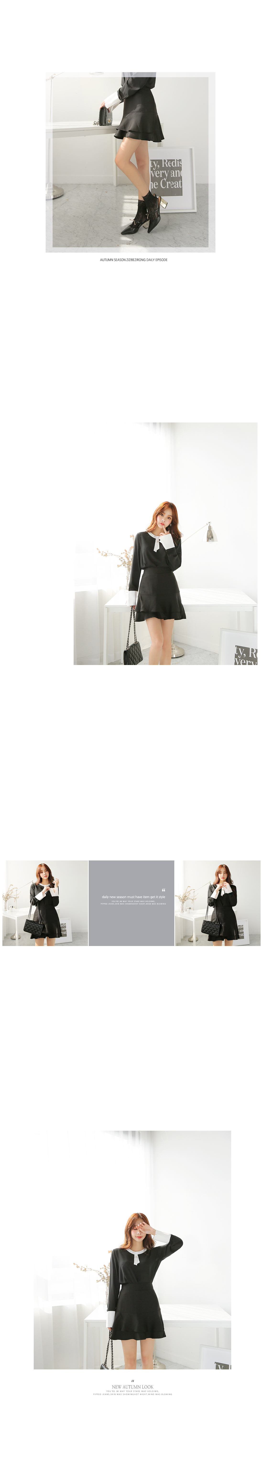 미니멀한 타이 디테일에 진주가 자리하고 있어,