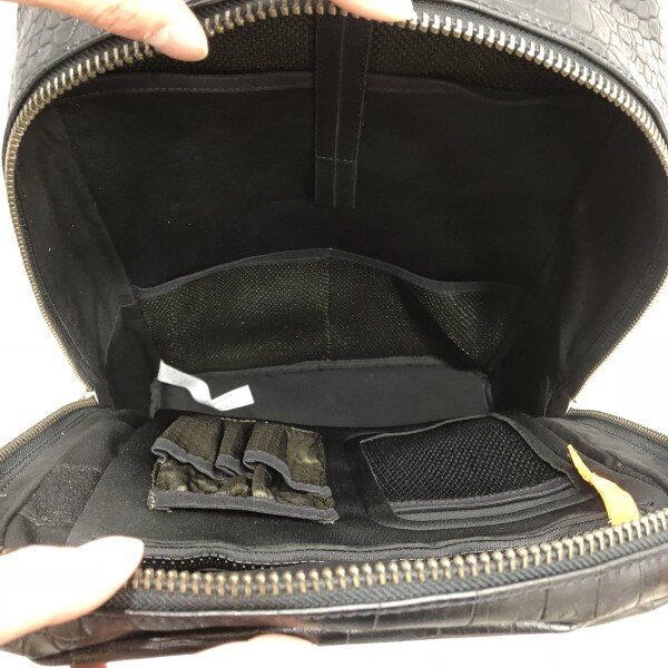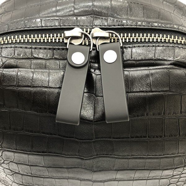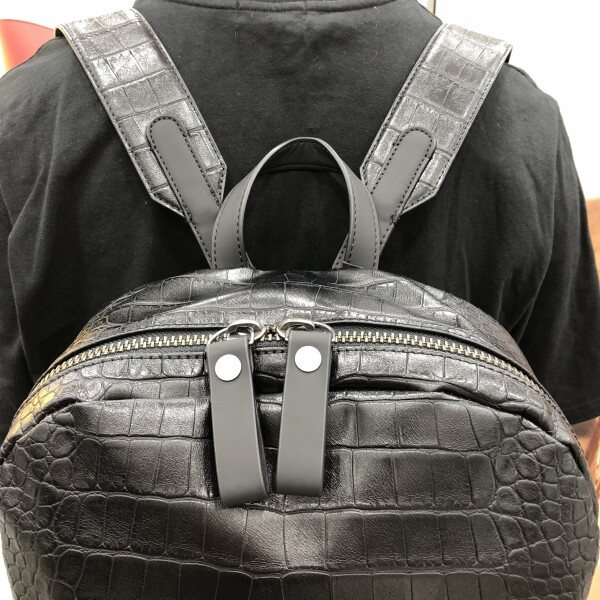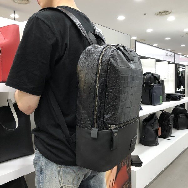 크록 텍스처의 PU 소재와 고무? 깔끔한 느낌의 조화.깅이 조절이 가능한 어깨끈/ 내부 15인치 노트북 수납공간 및 2개의 슬림 포켓.