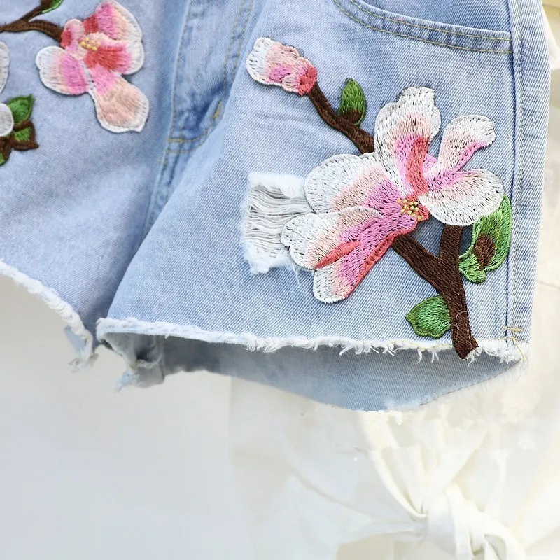 1:sweet floral embroidery shorts