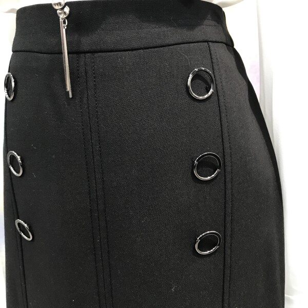 메탈링 장식이 포인트인 A라인미디스커트입니다여성스러운 디자인이예쁜 상품입니다