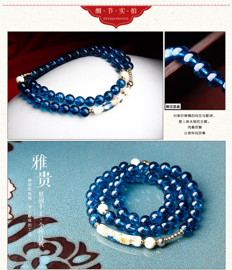 凤凰涅磐原创多层蓝晶石镀真金手链女时尚民族风手工创意饰品