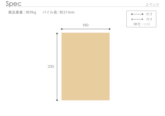 サイズ(cm):幅160x奥行230cm・約9kg