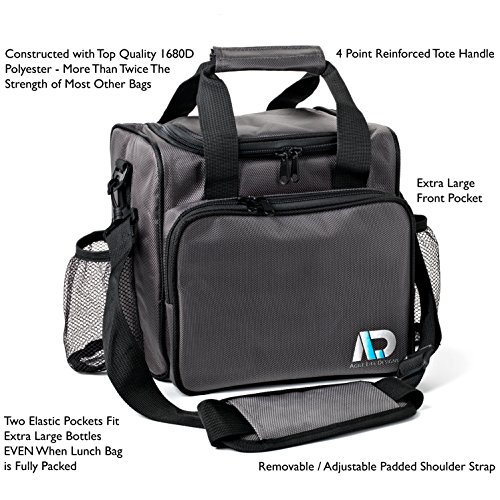 Agile Life Designs Large Reusable Grey Insulated Lunch Box For Woman, Kids, Man, Adult, Boy Or Girl;unlike The Pockets Of Other Other Collapsible Lunch Boxes, Our 2 Unique Mesh Pockets Carry Tall Water Bottles, Big Travel Mugs Or Other Oversized Drink Containers Even When The Inside Of The Lunch Bag Is Fully Packed; Which Makes It Easy To Take Drinks To High School, Work Or The Office And A Great Way To Get Your Daily Water Intake; Inside Lid Mesh Pocket With Zipper Holds Utensils