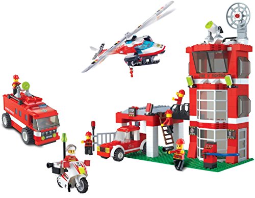 -. Title : Children's firehouse building blocks emergency rescue fire station play set - 638pcs Rush to the Hot fire with fireman and fire-truck vehicle to save the burning city - tight fit compatible parts