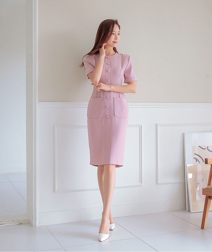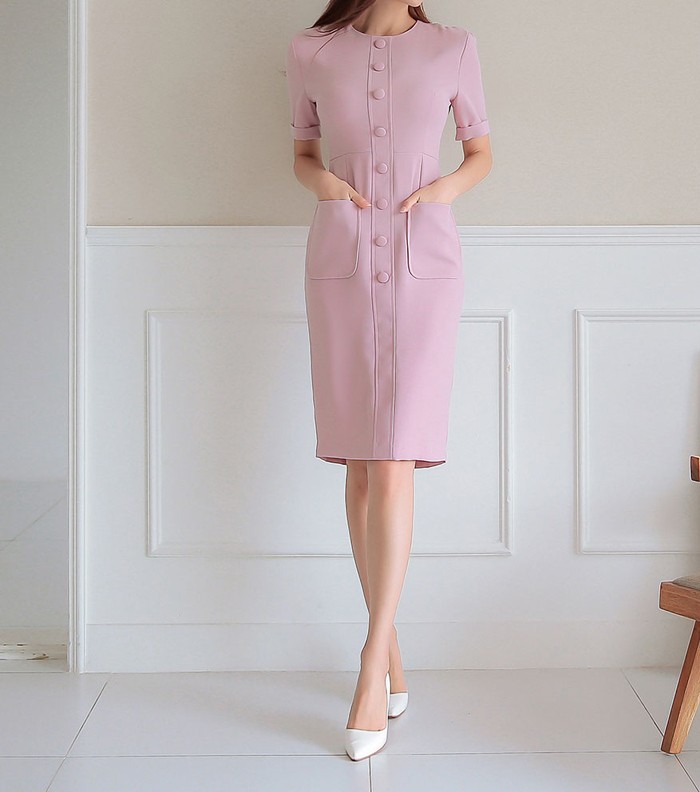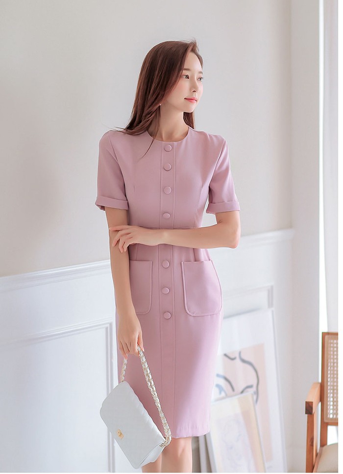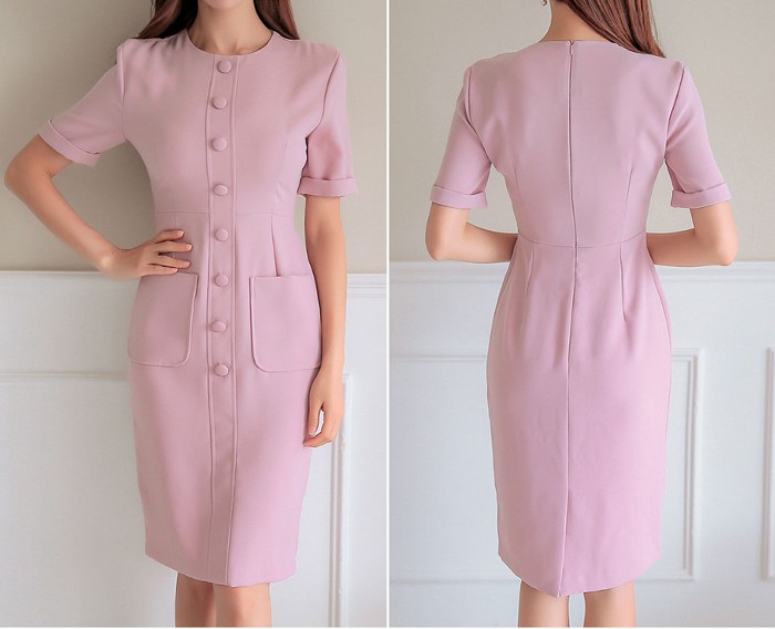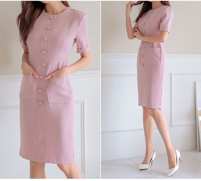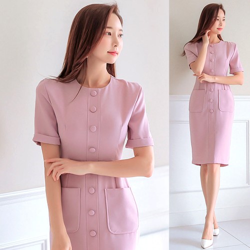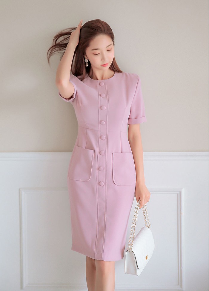 商品名:ワンピース 半袖 無地 きれいめ 通勤