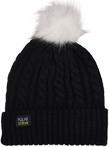 Binding : Apparel Product Description These Polar Extreme insulated thermal knit beanies with faux rabbit fur poms are the best helping you keep your head warm and comfortable in all types of cold weather. The fiber content helps wick moisture away from your head keeping it nice and dry. The woven pattern material helps maintain the beanies shape and the cute faux rabbit fur pom on top adds a unique little fashion flair. Soft Sherpa fleece lining adds an extra layer of comfort and warmth. One size fits most. Machine wash cold, tumble dry low. 96% Acrylic, 1% Spandex, 3% Other Fiber. Women's Polar Extreme insulated thermal knit beanie with faux fur pom in 4 great colors. A great beanie for the cold weather out doors type of gal. 0