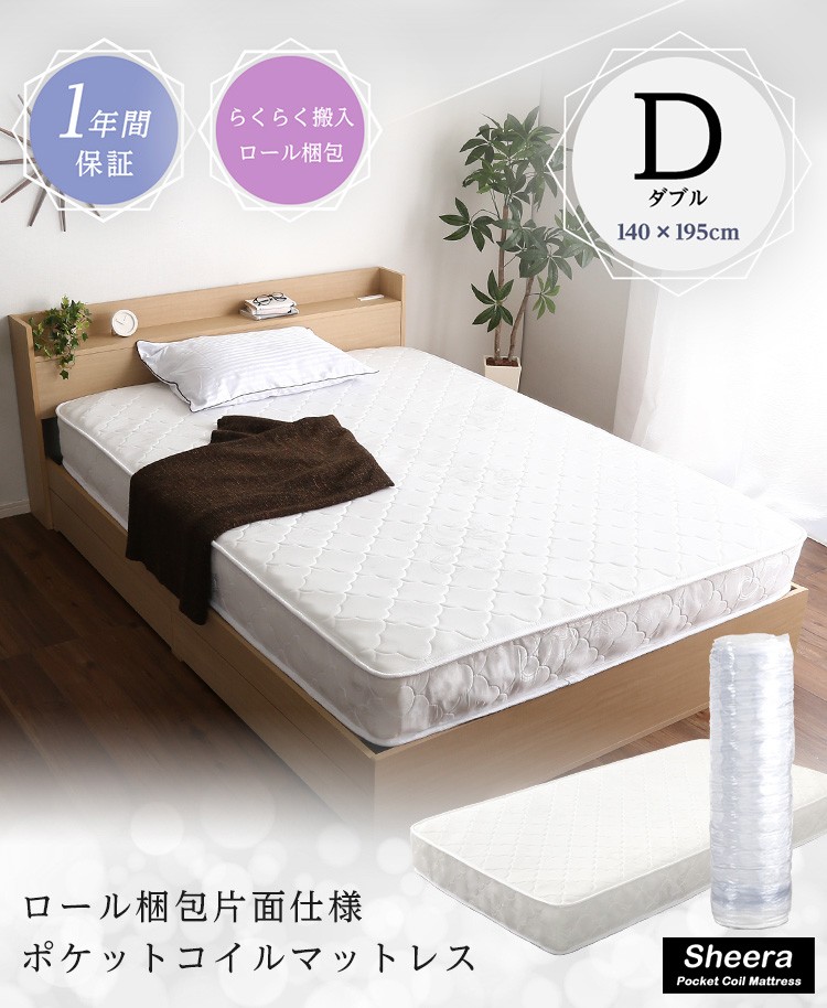 【商品名】ロール梱包片面仕様ポケットコイルマットレス【Sheera-シェエラ-】ダブルサイズ