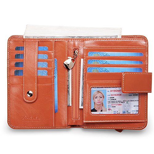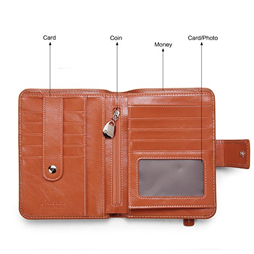 BOSTANTEN Women's Genuine Leather Bi-Fold Wallet Multi Card Organizer Pocket with Zipper
