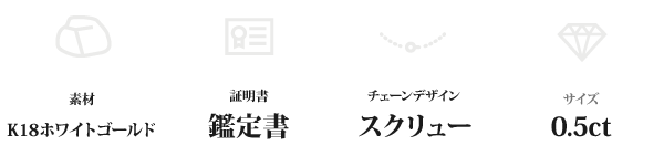 【商品名】K18WG 0.5ctダイヤモンドペンダント/ネックレス スクリューチェーン(鑑定書付き)