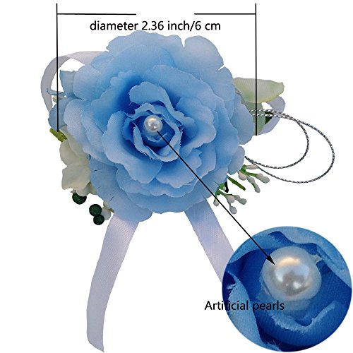 Colors : blue; simply beautiful corsage as pictured, decorated with pin, bling ribbon and small component et.