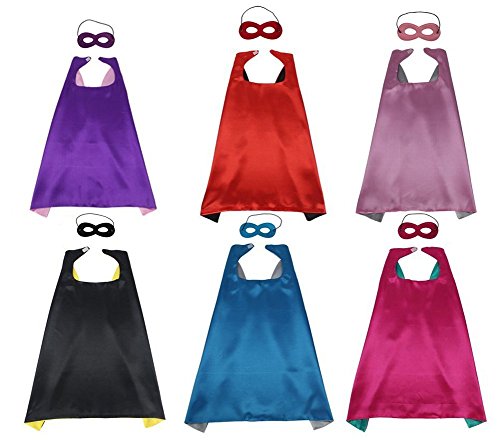 All the shawls are reversible, there are two colors to wear. If the Cape is caught in anything, then the neck will be closed by the Velcro, so easy to release. It also makes the children have the ability to put it on their own! The cloak is a satin material that makes it very light in the neck and gives it a super hero's flying effect. 6 pieces of super heroic corner double shoulders with different colors of children dress up party, whether it is party time, play time or tips or treatment time, your children will like this wonderful super hero cloak style. The superhero horn is made of double satin. If given proper care, even after years of wear, these are continuous. Gloves should be handwashed in cold water. Cloak will bring your child endless joy and enjoy it!Feature